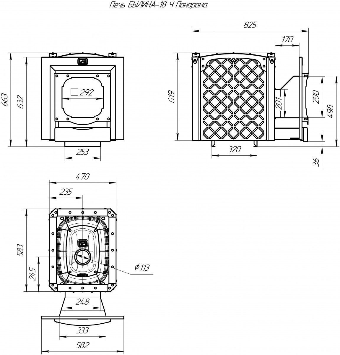 Печь для бани Былина 18 Ч Панорама