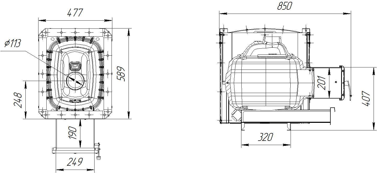 «Былина» - честная печь! Толщина корпуса чугунной топки составляет настоящие 10 мм! Именно поэтому масса печи без камней достигает 139 кг в модификации Былина 24Ч Панорама!